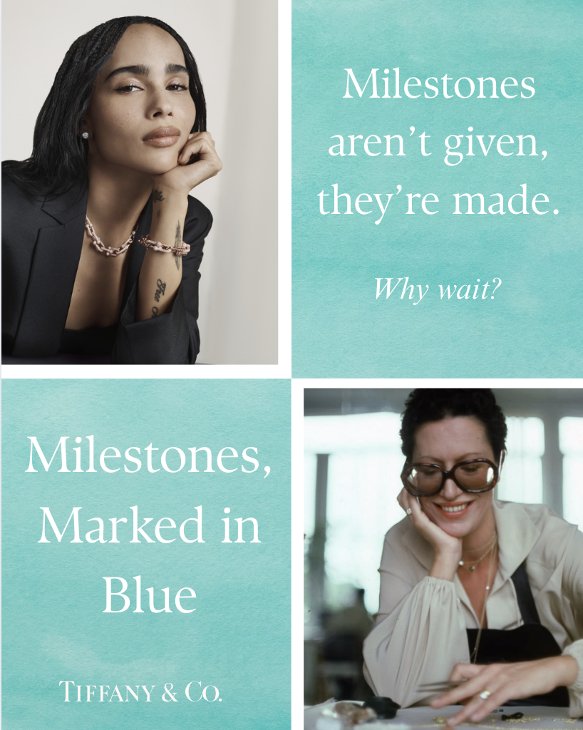 For Tiffany & Co., I identified a gap in its connection with Gen Z and developed Milestones, Marked in Blue, a campaign repositioning Tiffany as a brand for self-celebration, not just romance. The concept emphasized personal milestones like promotions, graduations, and fresh starts, aligning with the values of young, self-empowered women. Through storytelling, design strategy, and campaign messaging, I worked to shift brand perception and build deeper emotional resonance with a new generation.